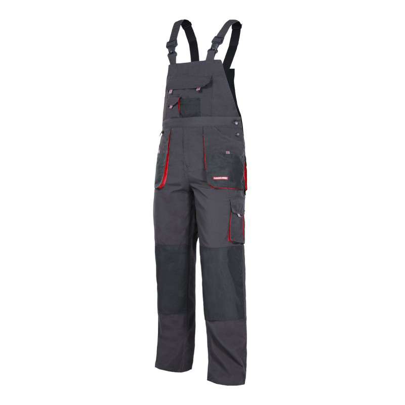 Buzunare pentru genunchiere. Portiuni intarite la imbinarea bretelelor, pe buzunare si genunchi,