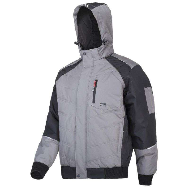 • Țesătură de tip rip-stop impregnată cu strat PVC, extrem de durabilă și rezistentă la uzură. 5 buzunare (4 exterioare, din care 3 cu închidere prin fermoar și 1 interior). Buzunar pentru telefonul mobil securizat cu material care reflectă radiațiile electromagnetice. Glugă căptușită, detașabilă prin fermoar. Componente reflectorizante. Manșete elastice.