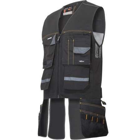 • 21 buzunare, din care 2 cu închidere prin fermoar. Buzunare funcționale și detașabile. Buzunare funcționale fabricate dintr-un material rezistent la uzură (Oxford 600D poliester) care pot fi atașate de vestă. Buzunarele centrale sunt prevăzute cu poliester Dobby Oxford. Buzunare pentru accesorii. Bandă suport pentru ciocan. Buzunare laterale cu arici pentru atașarea accesoriilor suplimentare. Buzunar pentru telefonul mobil securizat cu material care reflectă radiațiile electromagnetice. Închidere prin arici. Spatele este confecționată din mesh ce oferă o aerisire sporită. Inserții suplimentare reflectorizante pentru o mai mare siguranță în timpul lucrului. Model dotat cu port ecuson.
